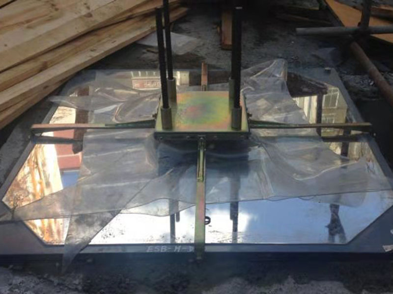 豎向壓力的傳遞是通過球體,下半球殼,受壓聚四氟乙烯滑板,不銹鋼板依次疊加傳至滑移箱底板。